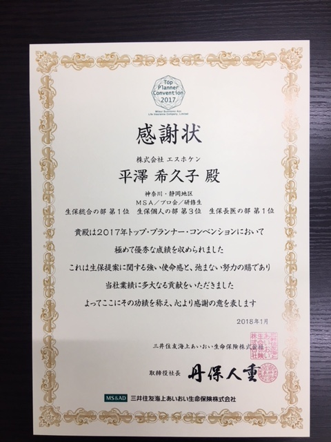 2017年度トップ・プランナー・コンベンションにて表彰されました